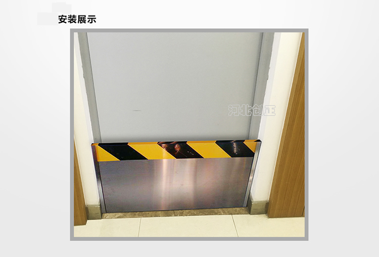 不銹鋼擋鼠板安裝簡單,先將膨脹螺釘(內(nèi)膨脹也叫漲塞)穿入卡槽上的安裝孔,再將兩側(cè)的卡槽沿門框?qū)⑴蛎浡葆斊叫泄潭ǖ介T框兩邊墻體上,卡槽安裝成功。使用時(shí)把擋鼠板順卡槽的內(nèi)徑滑入卡槽之中。不用時(shí)將擋鼠板取出,固定在墻體上的卡槽不影響門的正常開關(guān),不用取下。