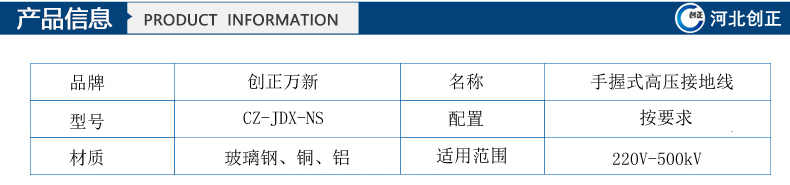 2)型號:CZ-JDX-NS-10kV手握式高壓接地線;